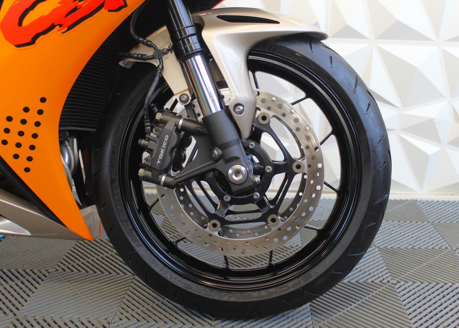 THE URBAN TIGER IS MORE THAN JUST A 20TH ANNIVERSARY LIVERY, THE 2014-2015 URBAN TIGER HAS AN UPGRADED CYLINDER HEAD ALONG WITH REVISED FUELING ( PGM-DFSI ) TO GIVE MORE POWER OVERALL AND MORE TOP END OVER THE STANDARD FIREBLADE MAKING THIS THE BIG DADDY OF THE FIREBLADES, COUPLED WITH A SPECIAL EDITION AKRAPOVIC EXHAUST, & SOLO REAR SEAT COWL, THE FIREBLADE DOESNT GET ANY BETTER, THE METALLIC COLOURS AS INCREDIBLY STUNNING!
